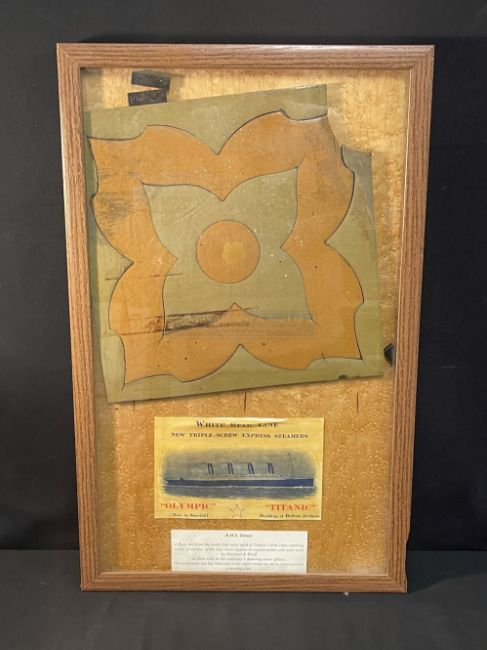 R.M.S. TITANIC: Floor tile with note stating it was one of the surplus tiles used by Harland and Wolff from the batch on Titanic. Framed and glazed. Tile measures 11½ins.