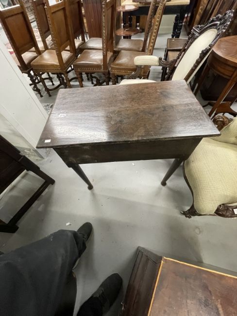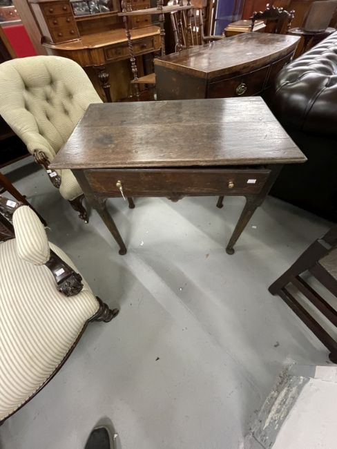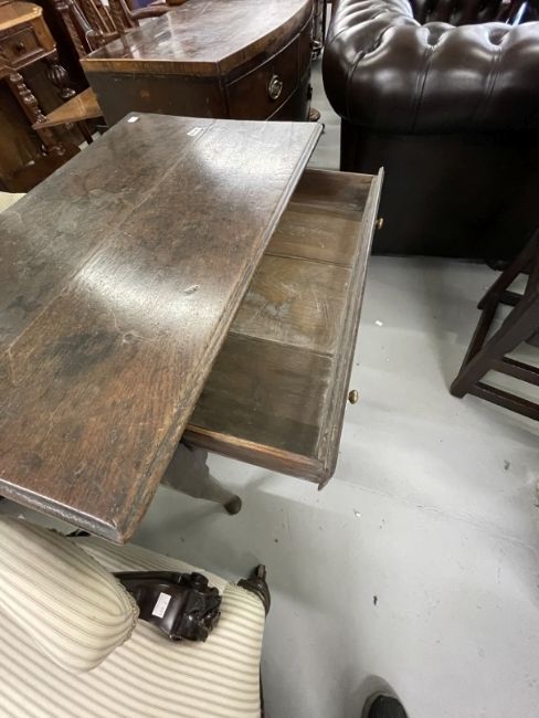 Early 18th cent. Oak lowboy, the moulded edge top above a single drawer shaped rail turned legs on pad feet. 33¼ins. x 19¾ins. x 27½ins.