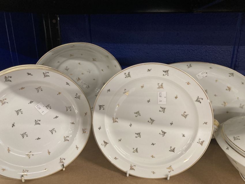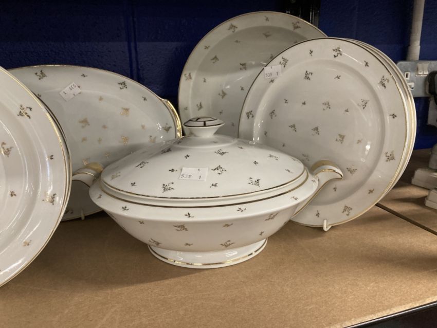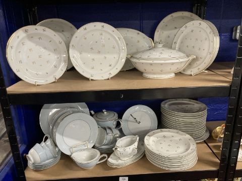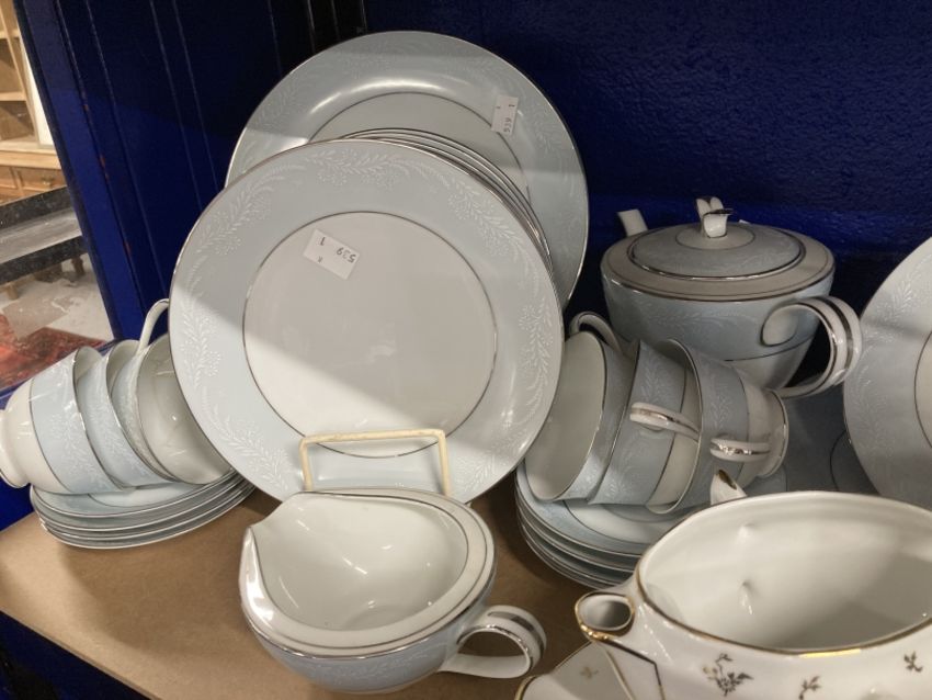 20th cent. Limoges, France part dinner service plates x 37, one lidded tureen, bowls x 2, dishes x 3, and a sauce boat marked Singer Limoges, France. Plus a part tea set Noritake Laureate design 179727.