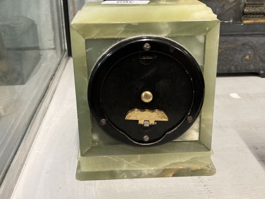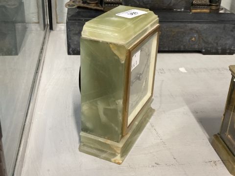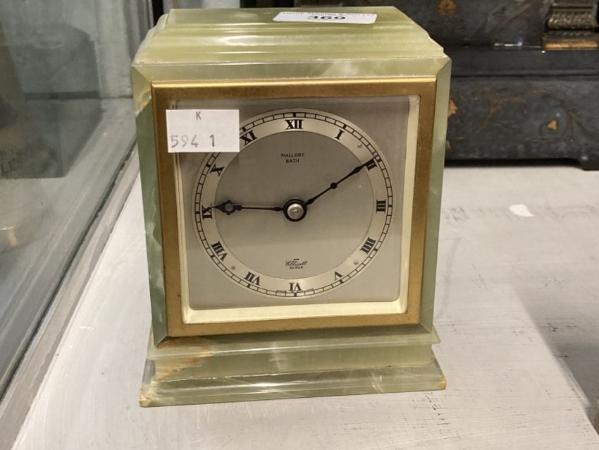 Clocks: 20th cent. Onyx Elliott of London mantel clock retailed by Mallory of Bath.