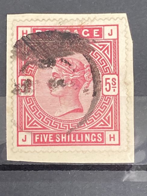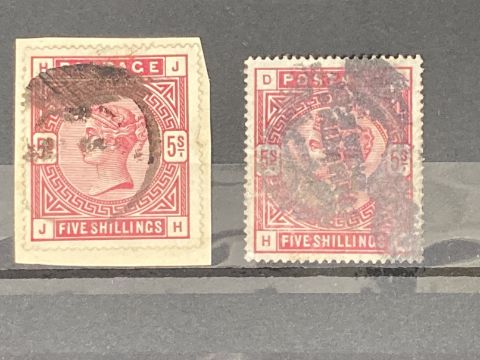 Stamps: 1883-84, SG180 5s colour variations from left to right, rose D-H, crimson H-J, both used, well centred.
