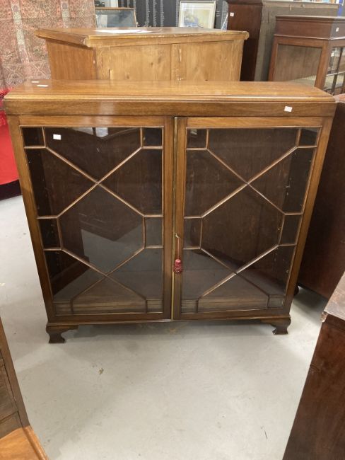 20th cent. Mahogany two door astragal glazed cabinet, moulded top on bracket feet. 48ins. x 48ins. x 13ins.