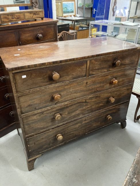 19th cent. Mahogany chest of two over three long drawers, turned knob handles on bracket feet. 41ins. x 49ins. x 22ins.