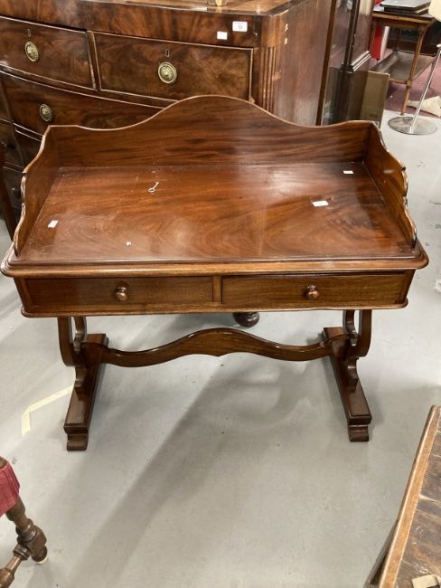 19th cent. Mahogany dressing table, apron back and lyre supports.