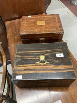 19th cent. Coromandel writing box. 12ins. x 5ins. x 9ins. Plus one other. (2)