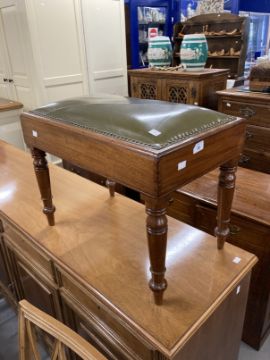 19th cent. Mahogany stool with leather top on turned legs, converted from a bidet. 18ins. x 24ins. x 14½ins.