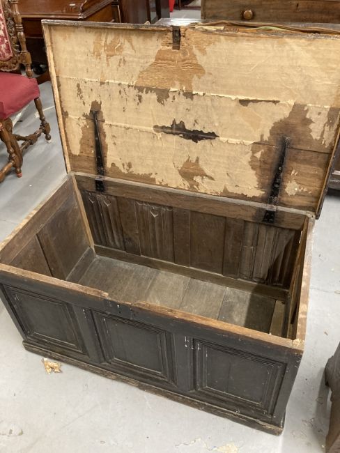 18th cent. Oak and pine coffer with later additions. 40ins. x 23ins. x 20ins.