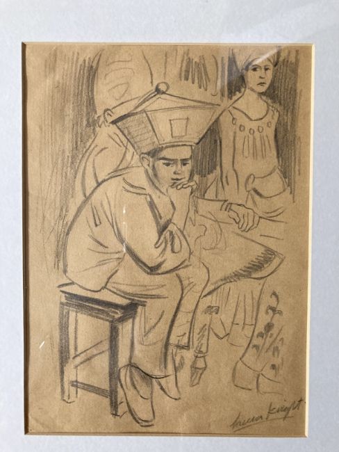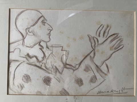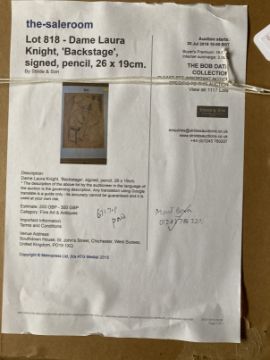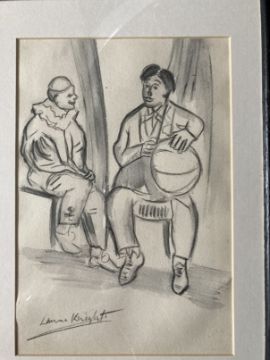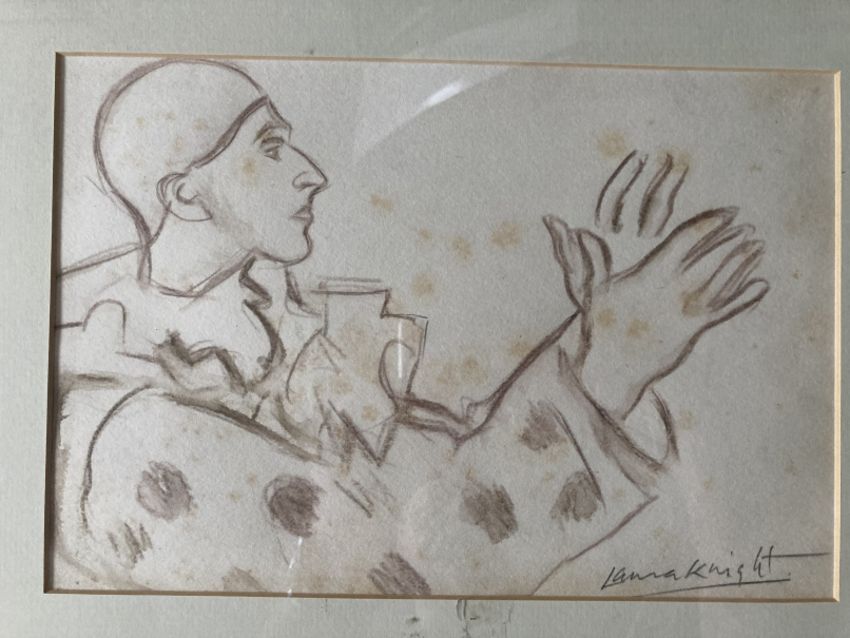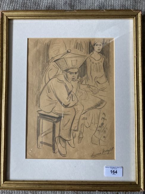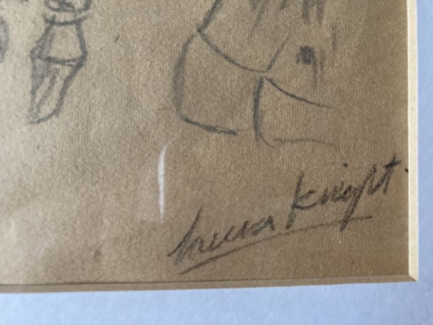 Dame Laura Knight (1877-1970): Pencil drawing backstage child actor seated, signed bottom right, framed and glazed. Bears label to reverse lot 818 Stride & Son 30-7-2015 671.70p paid. 10¼ins. x 7½ins. Plus three pencil sketches attributed to Dame Laura Knight of circus performers, all framed and glazed and signed Laura Knight. 10¾ins. x 7¼ins. 10¾ins. x 7¼ins and 7¼ins. x 11ins. (4)