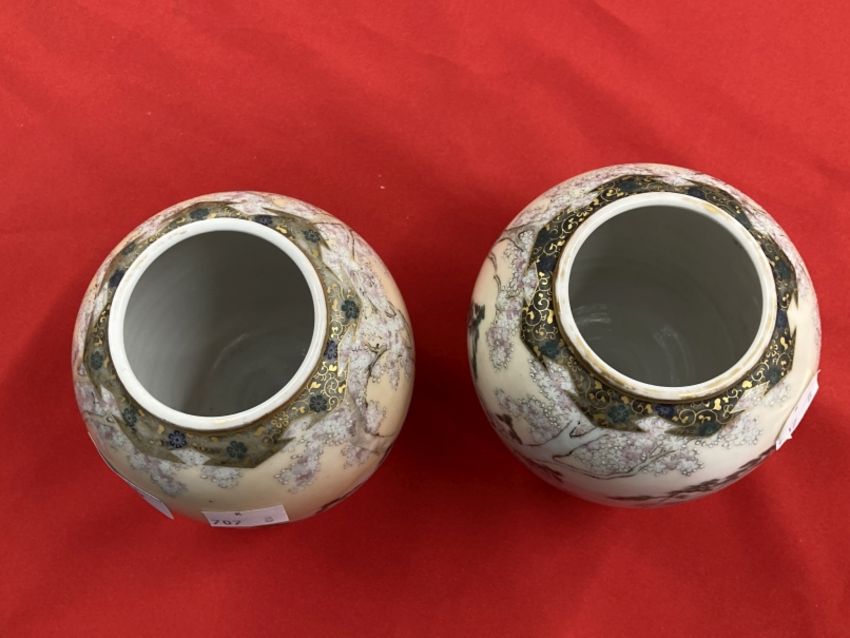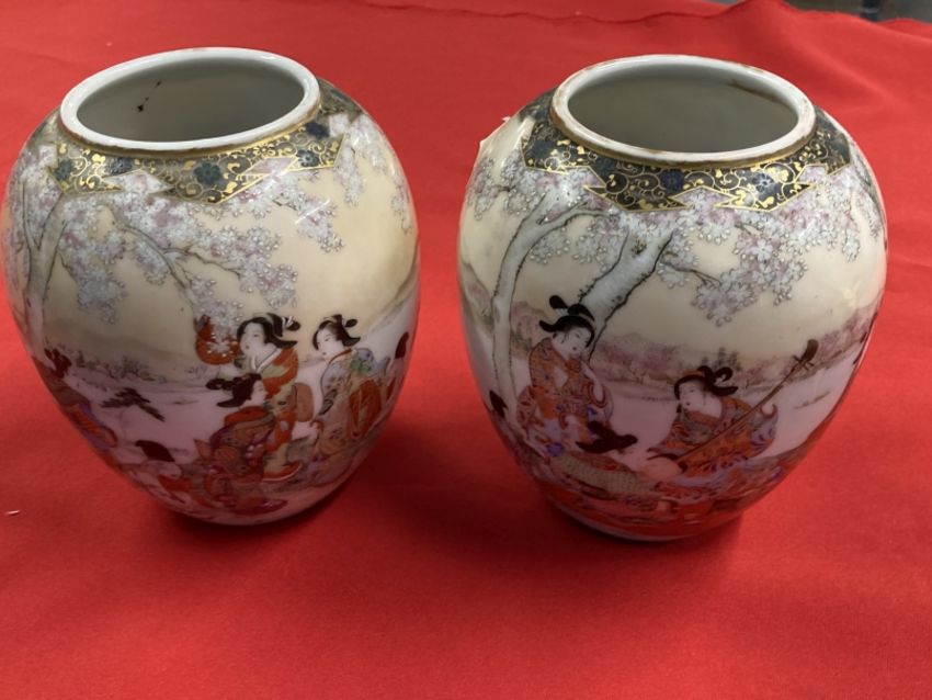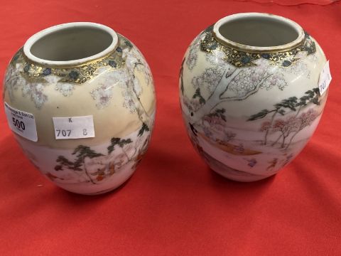 Oriental Ceramics: Two Japanese squat vases decorated with women and children in a rural scene, both signed.