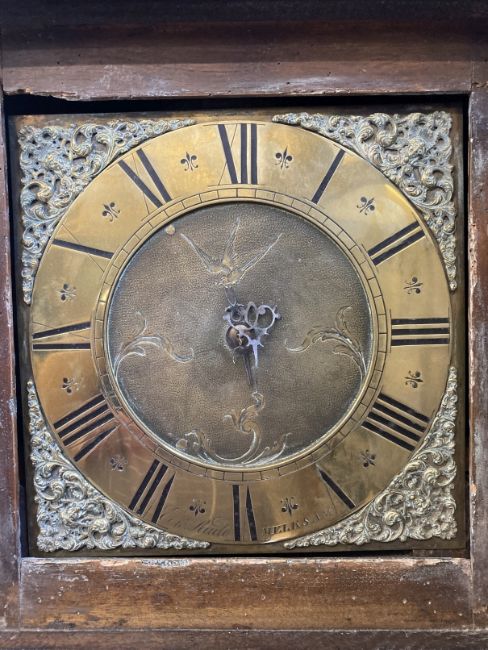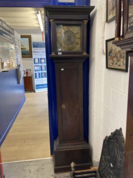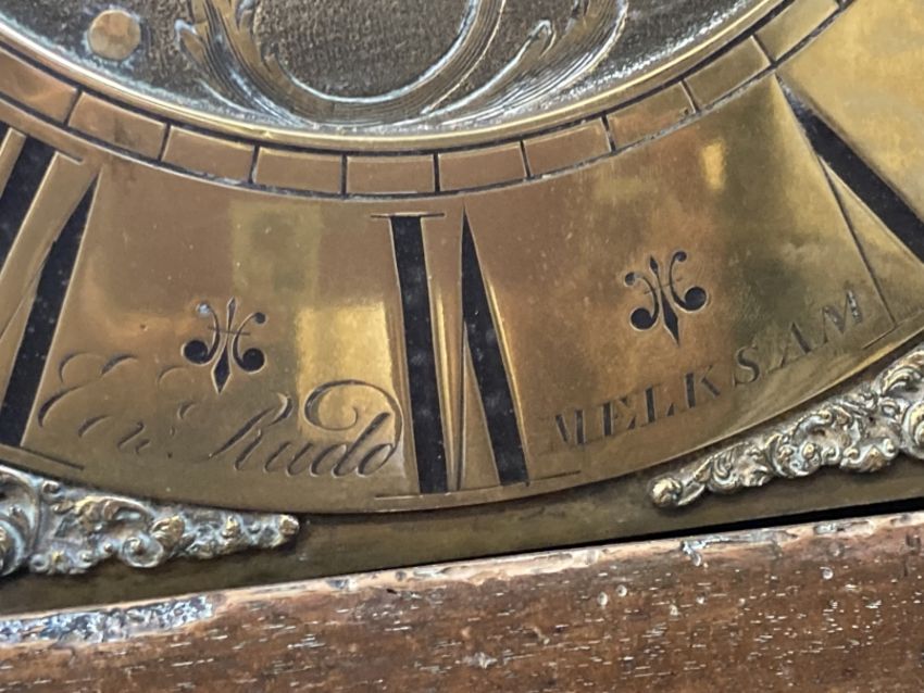 Clocks: 18th cent. 30 hour Longcase clock, Edward Rudd, Melksham c1780s. Mahogany case, brass dial with the spandrels decorated with cast cherubs with foliate surround.