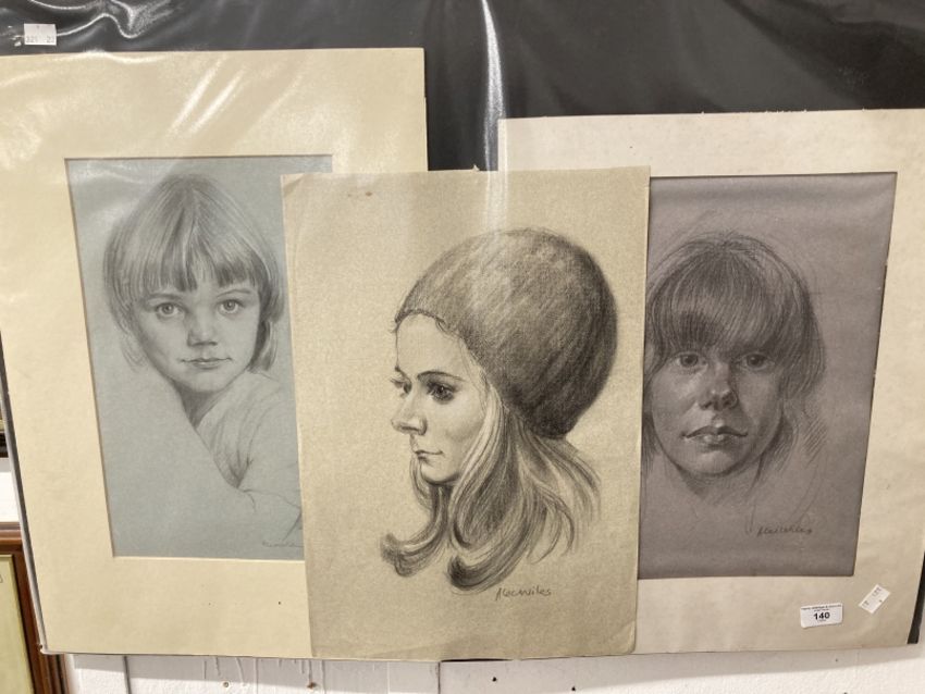 Alec Wiles (1924-2021): Sculptor, marine artist, and a landscape and portrait painter. He studied at Southampton School of Art from 1937-3 and exhibited at the Royal Academy of Arts, Royal Society of Portrait Painters, Royal Society of British Artists, and Society of Graphic Artists. Late 1970s, pencil, two portraits of a woman one in profile and one face on, plus a portrait of a young girl, all signed, the last dated 1976, all approx. 18ins. x 13ins. (3)