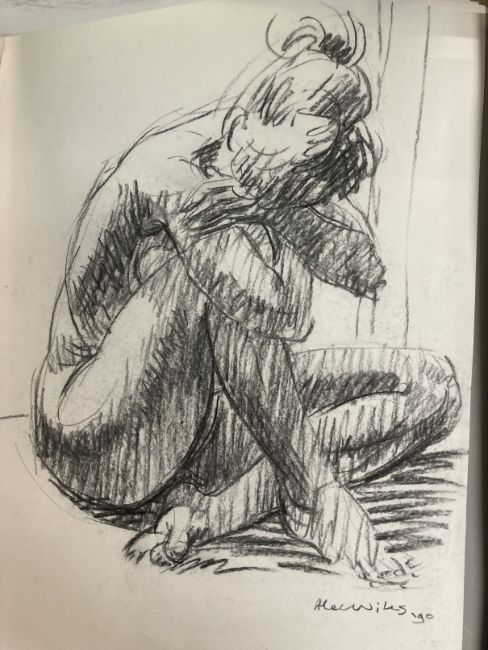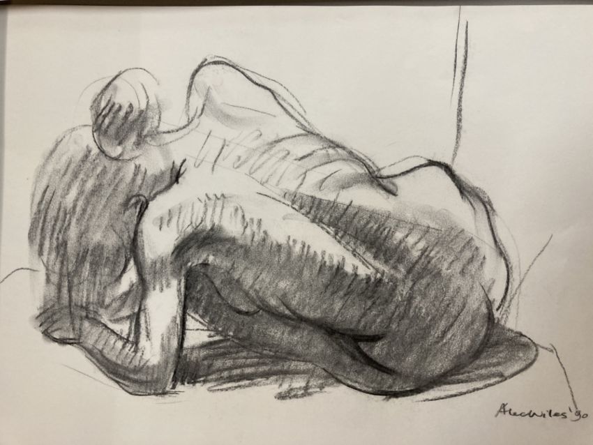 Alec Wiles (1924-2021): Sculptor, marine artist, and a landscape and portrait painter. He studied at Southampton School of Art from 1937-3 and exhibited at the Royal Academy of Arts, Royal Society of Portrait Painters, Royal Society of British Artists, and Society of Graphic Artists. 1989-90, pencil and charcoal portfolio of fourteen nude female sketches, possibly preparatory sketches for sculptures, all but one signed and dated, various sizes. Folio not included. (14)