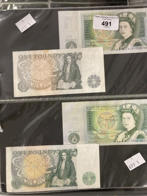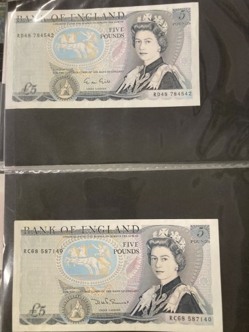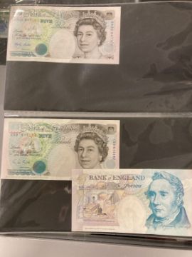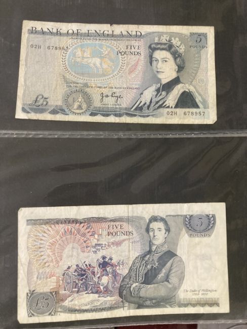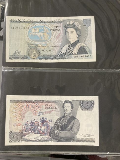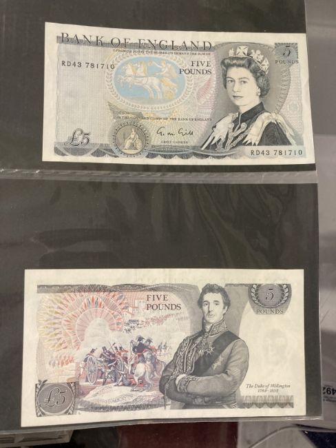 Numismatics: Banknotes GB £1 and £5 notes. Page and Somerset, Isaac Newton £1 notes (4). Lowther Gill, Kentfield, Page and Somerset, Duke of Wellington and George Stevenson £5 notes (14). Eighteen in total.