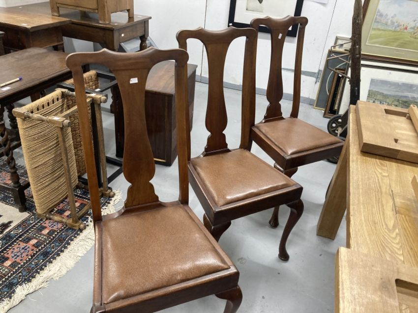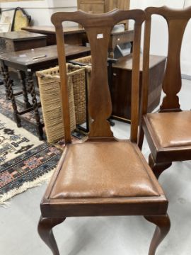 20th cent. Mahogany Queen Anne style dining chairs, drop in seats on cabriole legs. (6)