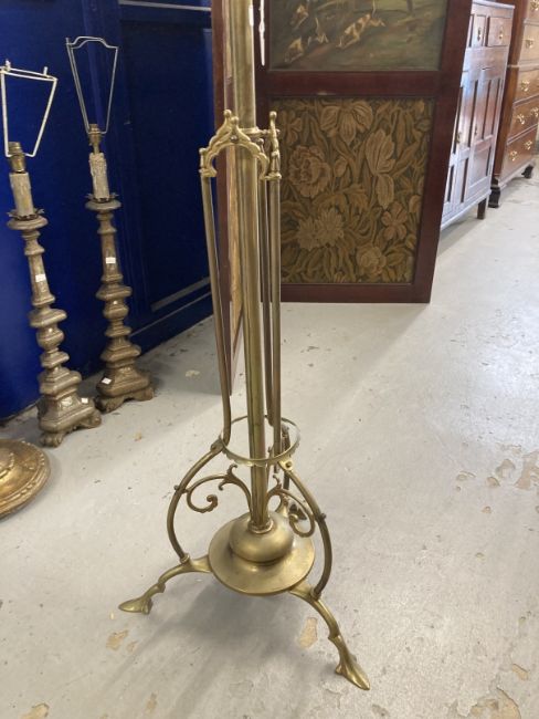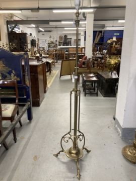 Aesthetic brass adjustable standard lamp on three cabriole lags stamped to base Hinks & Son No. 3293.