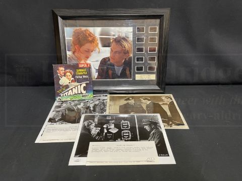 MOVIES: Titanic related film material including, framed film cells and photographs relating to Raise The Titanic and A Night to Remember. (5)