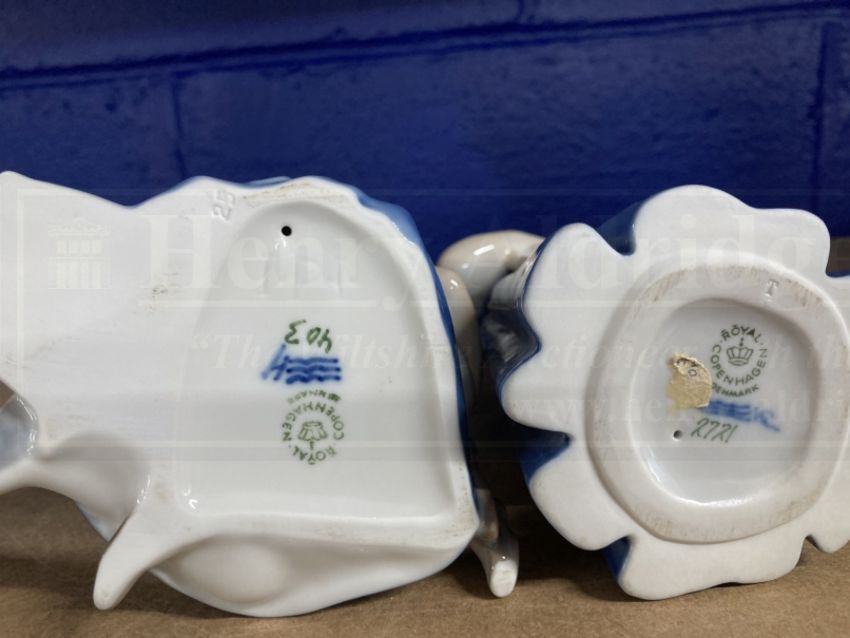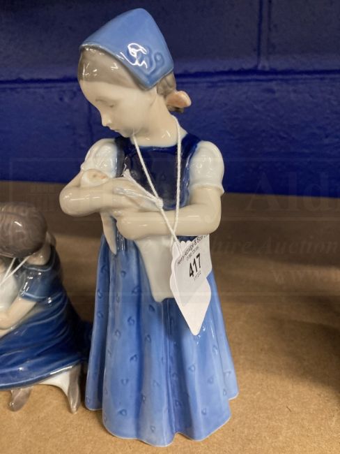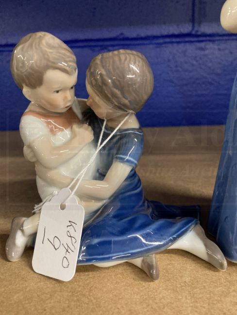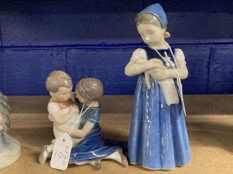 Royal Copenhagen: Brother and sister No. 403, plus girl with doll No. 2721.