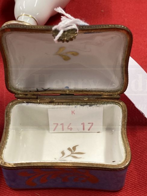 Late 18th/early 19th cent. Miniature Meissen vases painted with flower sprays, a pair. Plus small hand painted Continental porcelain box and a French enamel patch box base.