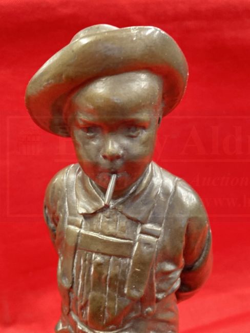 C. Kundonmann: Bronze figure of a boy smoking a Cheroot raised on a black marble base, signed C. Kundonmann. Bronze 11ins. Overall 12½ins.