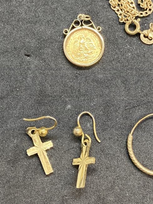 Hallmarked and yellow metal odd earrings, broken chains, etc. All test as 9ct gold. Total weight 10g.