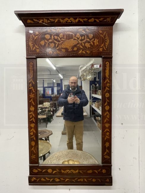 19th cent. Dutch marquetry mahogany wall mirror, the pier glass inlaid with tulip flowers and foliage. 53ins. x 30½ins.