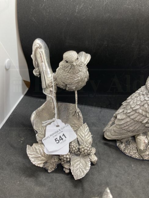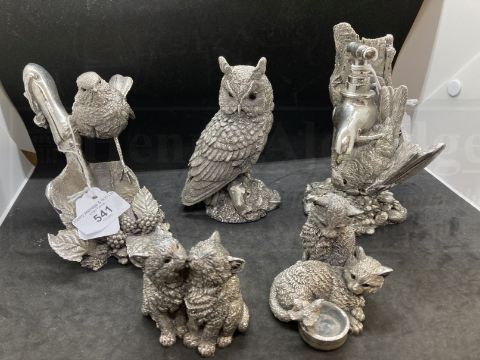 Collectables: Hallmarked silver 'Country Artists for the Discerning' an owl, robin, bird drinking from a tap and two boxed groups of cats. (5)