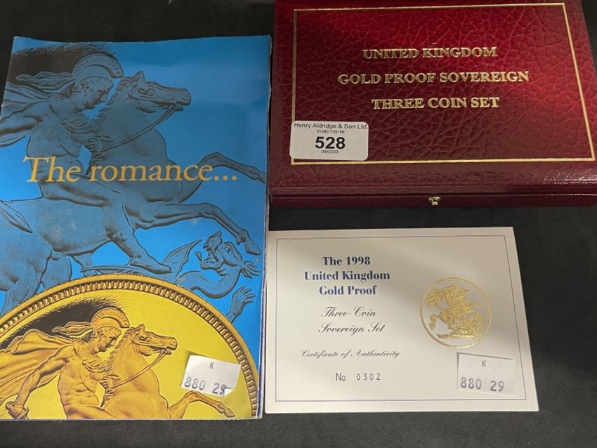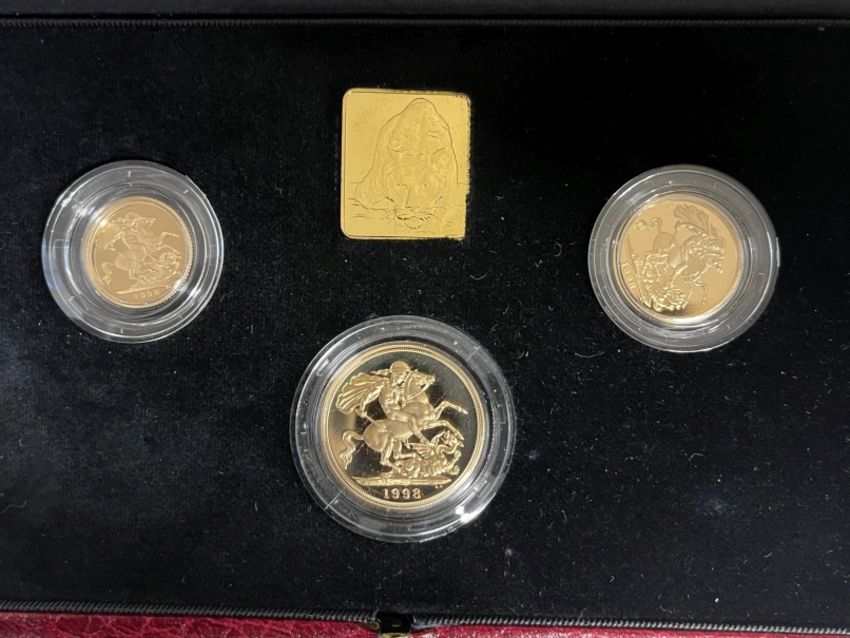 Coins/Numismatics: Royal Mint 1998 Queen Elizabeth II Royal Mint limited edition 302/2000 proof gold sovereign three coin set, comprising double, single and half sovereigns