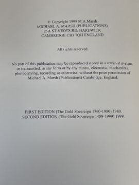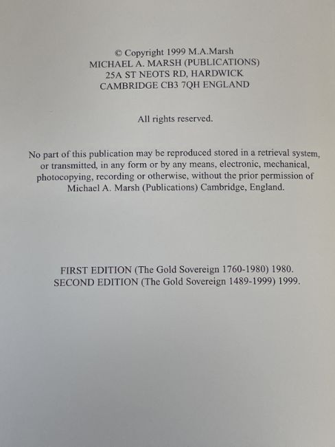 Coins/Books: The Gold Sovereign By Michael A Marsh, Second Edition 1980. First published in 1980, The Gold Sovereign by M A Marsh is still regarded by the numismatic world as the most important resource on the subject, Green Hardback.