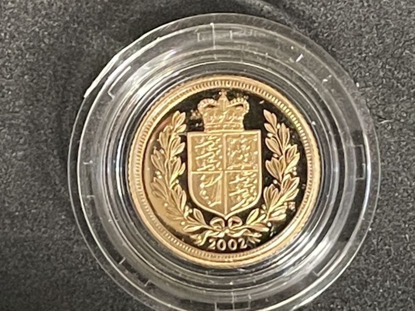 Coins/Numismatics: Royal Mint Queen Elizabeth II 2002 gold proof half sovereign coin, cased with certificate no 04283.