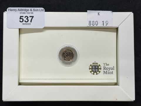Coins/Numismatics: Royal Mint boxed 2009 quarter sovereign B/U