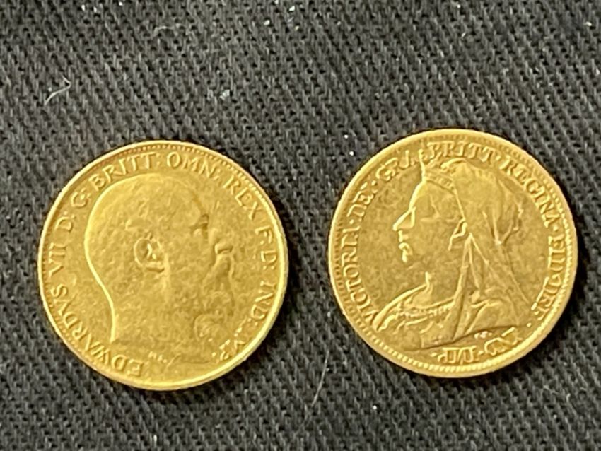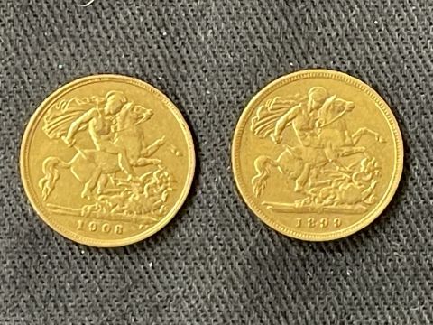 Coins/Numismatics: Gold George V and Queen Victoria Half Sovereigns 1899 and 1908.