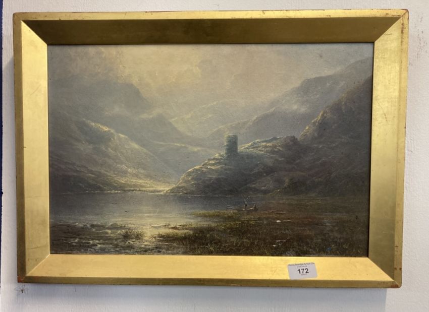 J.W. Hamilton-Marr A.R.C.A. (1846-1913): Oil on canvas Loch side study signed lower left, inscribed on verso Dolbardarn Hamilton Marr. Minor flaking see photograph. 17ins. x 11ins.