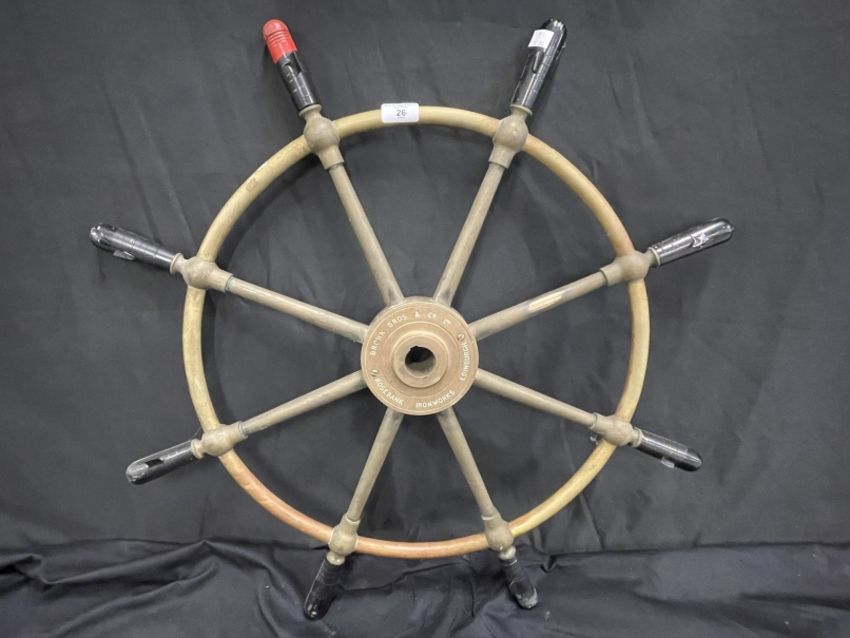 MARITIME: Brown Brothers and Company Rosebank Ironworks Edinburgh bronze ship's eight spoked wheel. 30ins.