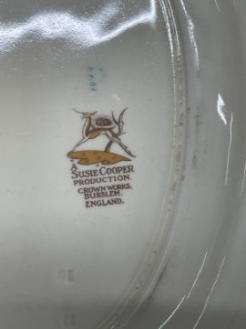 The Mavis and John Wareham Collection: 20th cent. Ceramics: Susie Cooper Crown Works floral spray and green border meat ovals, dia. 12ins, 14, 18ins. The 12ins with small chip to edge.