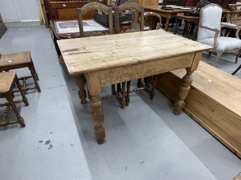 19th cent. Pine scrub top table, single drawer to one end on baluster turned legs. 48ins. x 28¼ins. x 29¾ins.