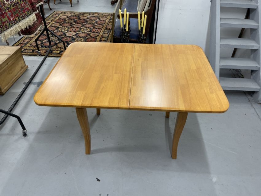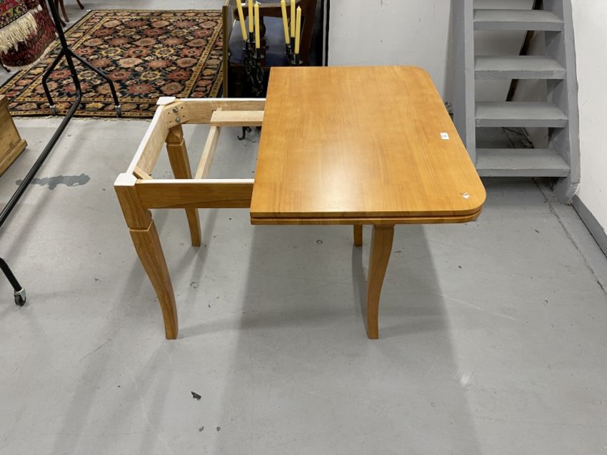 20th cent. Possibly Scandinavian, cherry or similar timber, dining table with a twist and flip top. Top when open approx. 48ins. x 36ins. x 30ins.