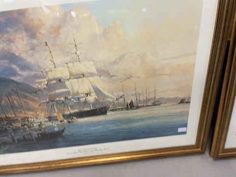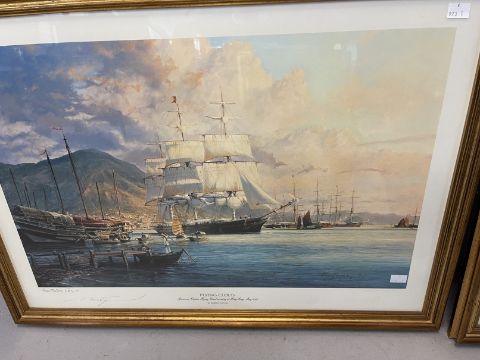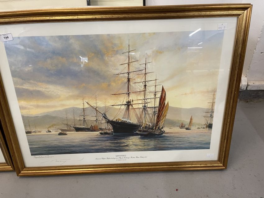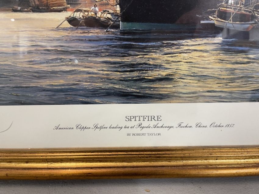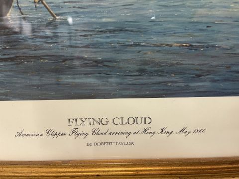 20th cent. Print, Robert Taylor signed maritime presentation copies - Flying Cloud and Spitfire American Clippers. Gilt framed and glazed, a pair. 26ins. x 18ins.
