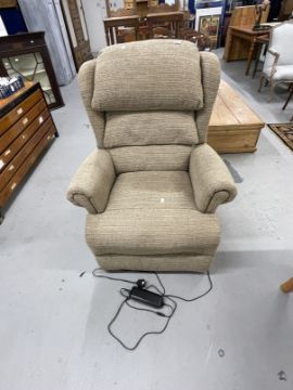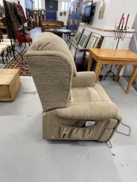Electric reclining armchair, beige upholstery.