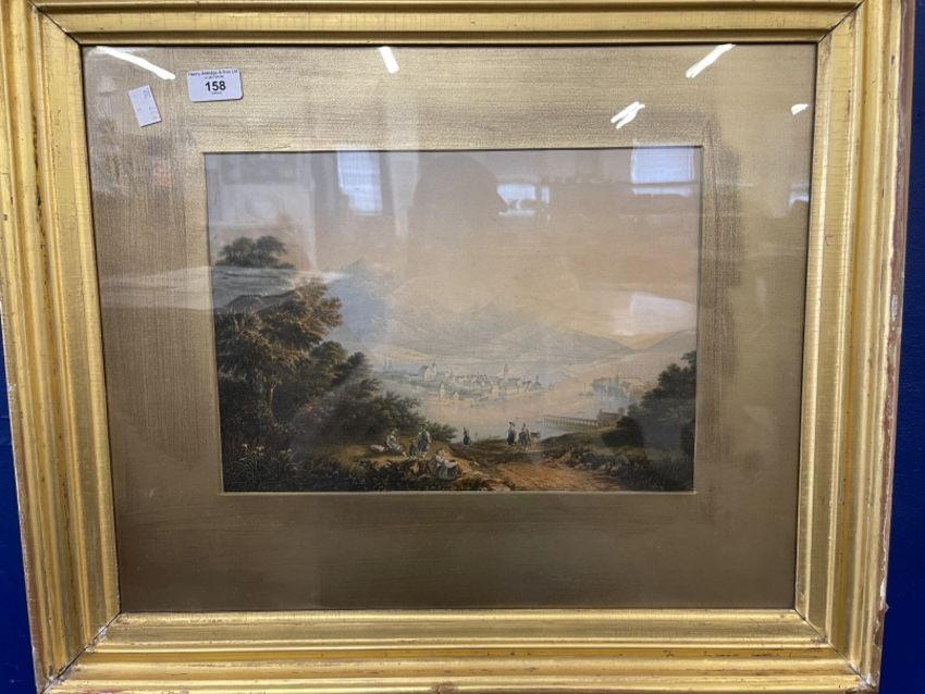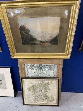 Maps & Pictures: A framed and glazed map of Herefordshire 19¼ins. x 15ins. A framed & glazed map of Worcestershire published by Henry Teesdale & Co 14ins. x 17ins, and a print of a continental landscape with a town in the background in a gilt frame (3)