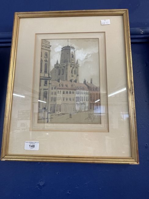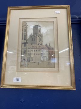 Myles Birket Foster RWS (1825-1899): Watercolour on paper, label on verso 'Street Scene in France'. Page from a sketchbook of Myles Birket Foster's signed by Martin Hardie the author of Watercolour Painting in Britain. 6ins. x 9ins.