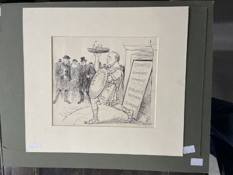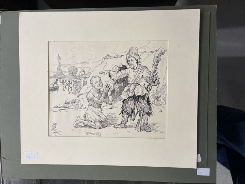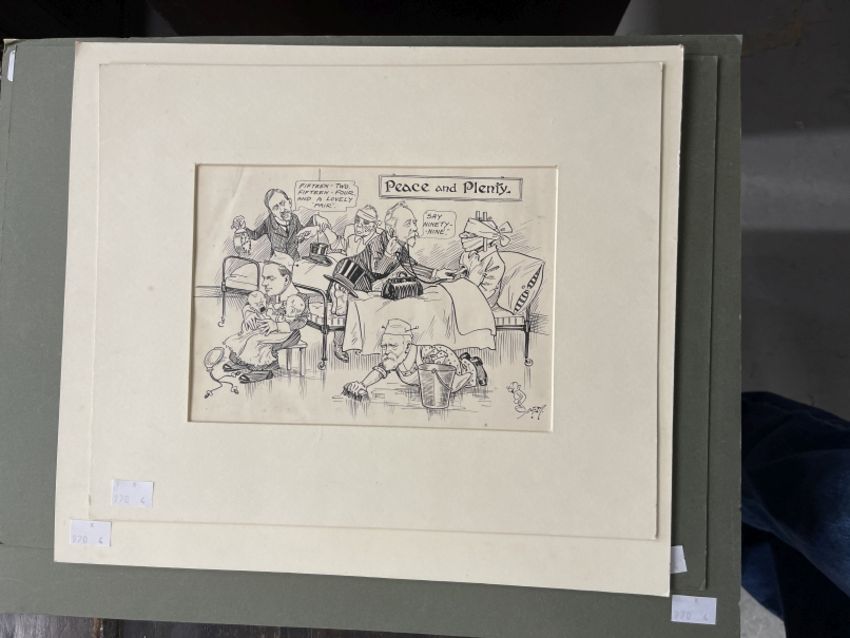 Militaria: 20th cent. English School. Collection of WWI and related pen and ink magazine illustrations by Alfred Morton including WWI related such as Peace and Plenty. Mostly 9ins. x 8ins. (5)