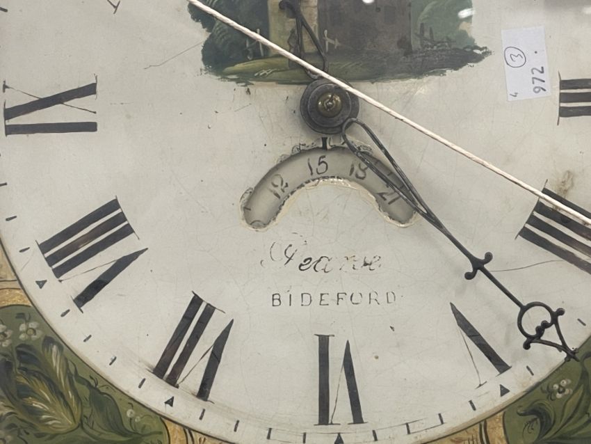 Clocks: 19th cent. Longcase clock, 30 hour movement by Pearse of Bideford, the painted dial approx. 11ins square, in a contemporary oak case.