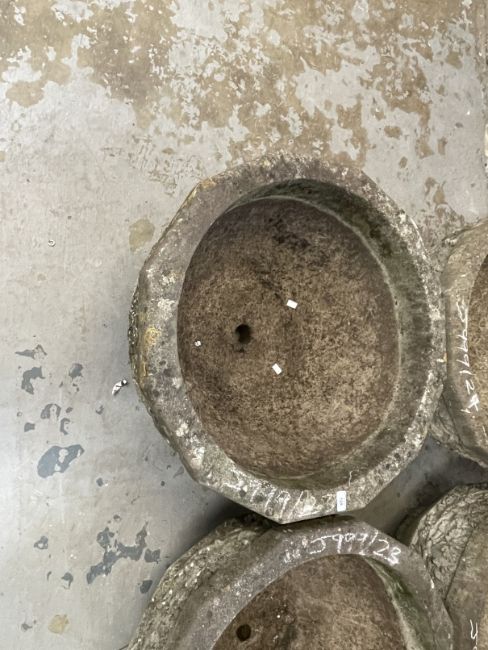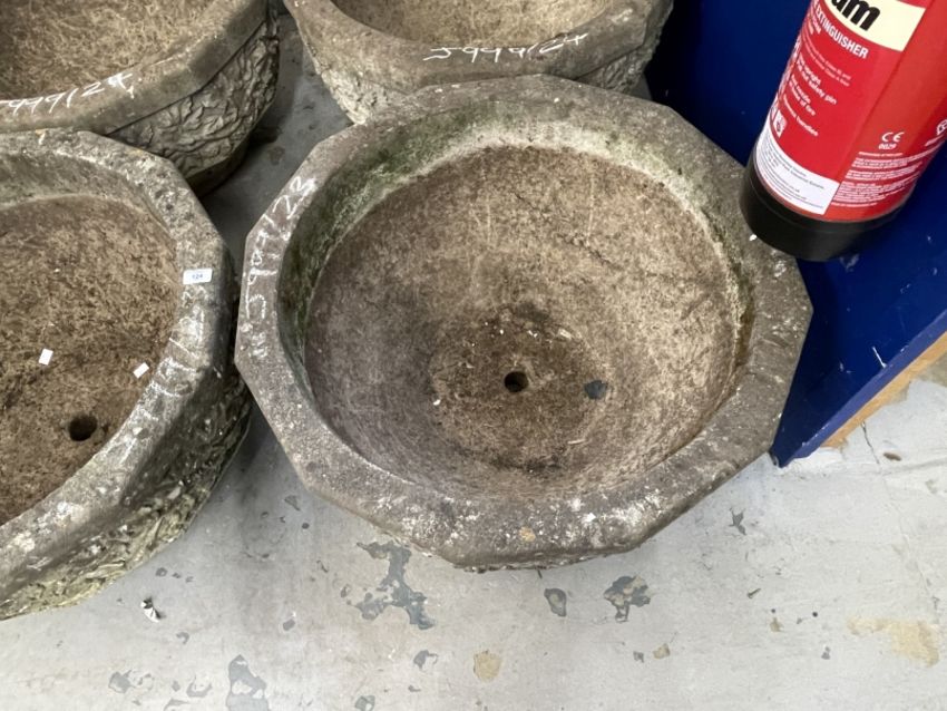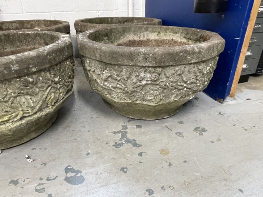 Gardenalia: Mid 20th cent. Pair of large reconstituted planters with vine and leaf decoration. Dia. 28¾ins. Height 16ins.