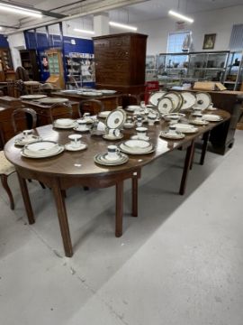 19th cent. Mahogany 'D' end table with two leaves and centre section. Approx. 9ft. x 4ft. with leaves fitted.