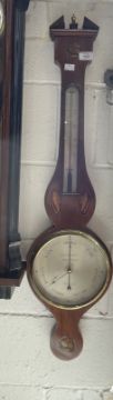 Early 19th cent. Mahogany G. Vanini & Co. Peterborough banjo barometer, broken pediment above circular shelf inlay, silver thermometer scale flanked by two oval shelf inlays, the silvered dial signed with a further shell inlay below. Dial 8ins. Height 38ins.
