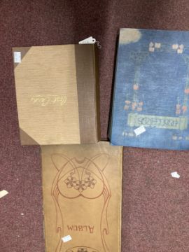 Postcards: Edwardian albums containing hundreds of cards including early railway vanguard omnibus accident Handcross 1906, greetings, 1911 Coronation series, song cards, glamour, Chicago buildings, GB and European topography. (3 albums)