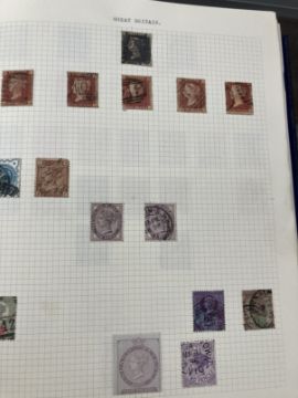 Stamps: Lightly populated Stanley Gibbons album of mainly used Commonwealth stamps including GB 1d black, which we believe to be plate 5, with four thin margins, IF, obliterated with a black Maltese cross, and a Ceylon SG30 1861 4d rose red.
