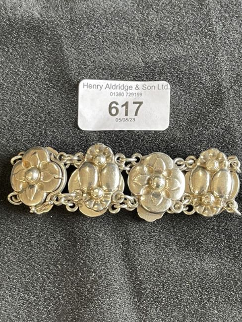Jewellery: Georg Jenson silver floral bracelet marked 27 Sterling Denmark. 49.6g.