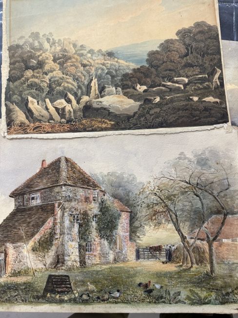 19th/20th century watercolours including works by Merton, Elizabeth Drake and Edward Hargitt. Mostly signed or monogrammed. All unframed. 10ins. x 7ins. to 14ins. x 11ins.