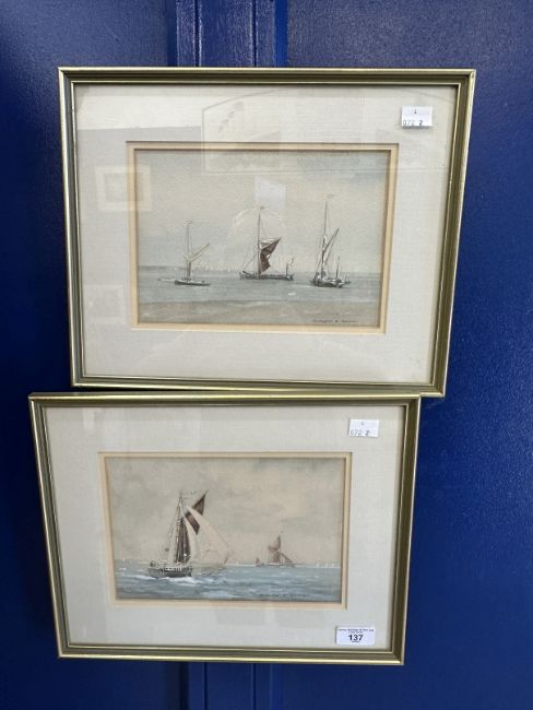 Christopher D. Arnold b.1955: Watercolours on paper, Barges on the Thames, signed lower right, framed. A pair. 8¾ins. x 6ins. Provenance: The collection of Rodney Bewes.